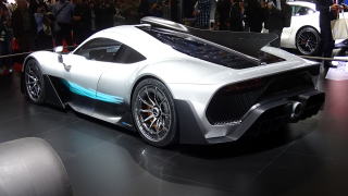 | Mercedes-AMG Project ONE "1.6L V6ガソリンエンジン+4Motorの組み合わせで総出力1,000馬力以上、カーボンモノコックボディ、 F1同様の8速トランスミッション" |