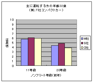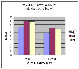 | <ダイレクト系3社による"T社コンパクトカー保険料(差額!!)"比較結果(上記グラフ参照方)> |