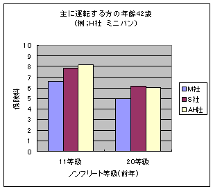 | <ダイレクト系3社による"H社ミニバン保険料(差額!!)"比較結果(上記グラフ参照方)> |