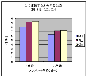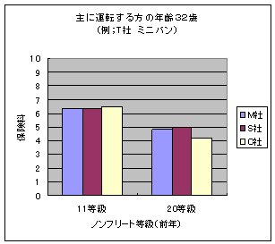 | <ダイレクト系3社による"T社ミニバン保険料(差額!!)"比較結果(上記グラフ参照方)> |