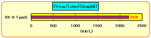 ロータリーエンジンは、PS/Liter(リッター当たり馬力)のGraphの示す通り小排気量で 高出力化が可能な為、必然的にPrice/Literは、高くなる。 |