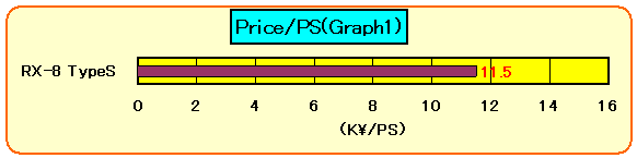 | 高出力化を達成したロータリーエンジン”RENESIS"は、車両本体価格を最高出力で割った馬力当たり価格:Price/PSに着目すると決して高い数値ではない。レシプロ搭載車とロータリー搭載車をプライス面で相対比較する場合にはPrice/Liter(リッター当たり価格)では誤解を招くので、このPrice/PS(馬力当たり価格)が妥当と考える。 |